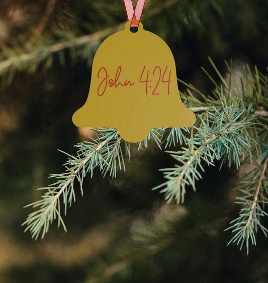 "Worship" Metal Christmas Ornament with John 4:24 – Christian Faith-Based Holiday Décor