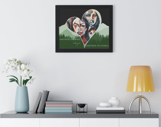 Abstract Empowerment: Women in Heart Framed Poster - Empower a Woman, Empower the World