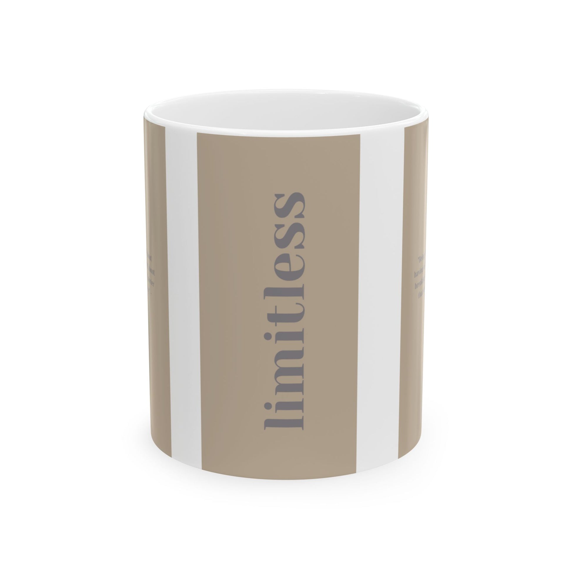 This ceramic mug is minimalist designed and features the word 'limitless' for those who dream big and break boundaries. It is perfect for daily use or as a motivational gift for friends and family. Ideal for those who love to start their day with a positive mindset. Relevant for birthdays, graduations, promotions, and inspirational occasions.