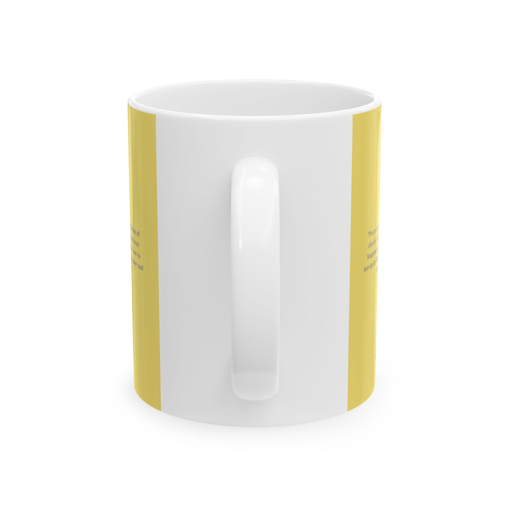 This delightful minimalist ceramic mug features the text 'Peace'. Designed for mindfulness, reflection, and creativity, this minimalistic mug is perfect for grounding your thoughts and nurturing your inner calm. It is relevant for those seeking peace, mindfulness, and relaxation. Perfect for enjoying a cozy morning coffee or tea, this mug can be a great gift for birthdays, Christmas, or any occasion.
