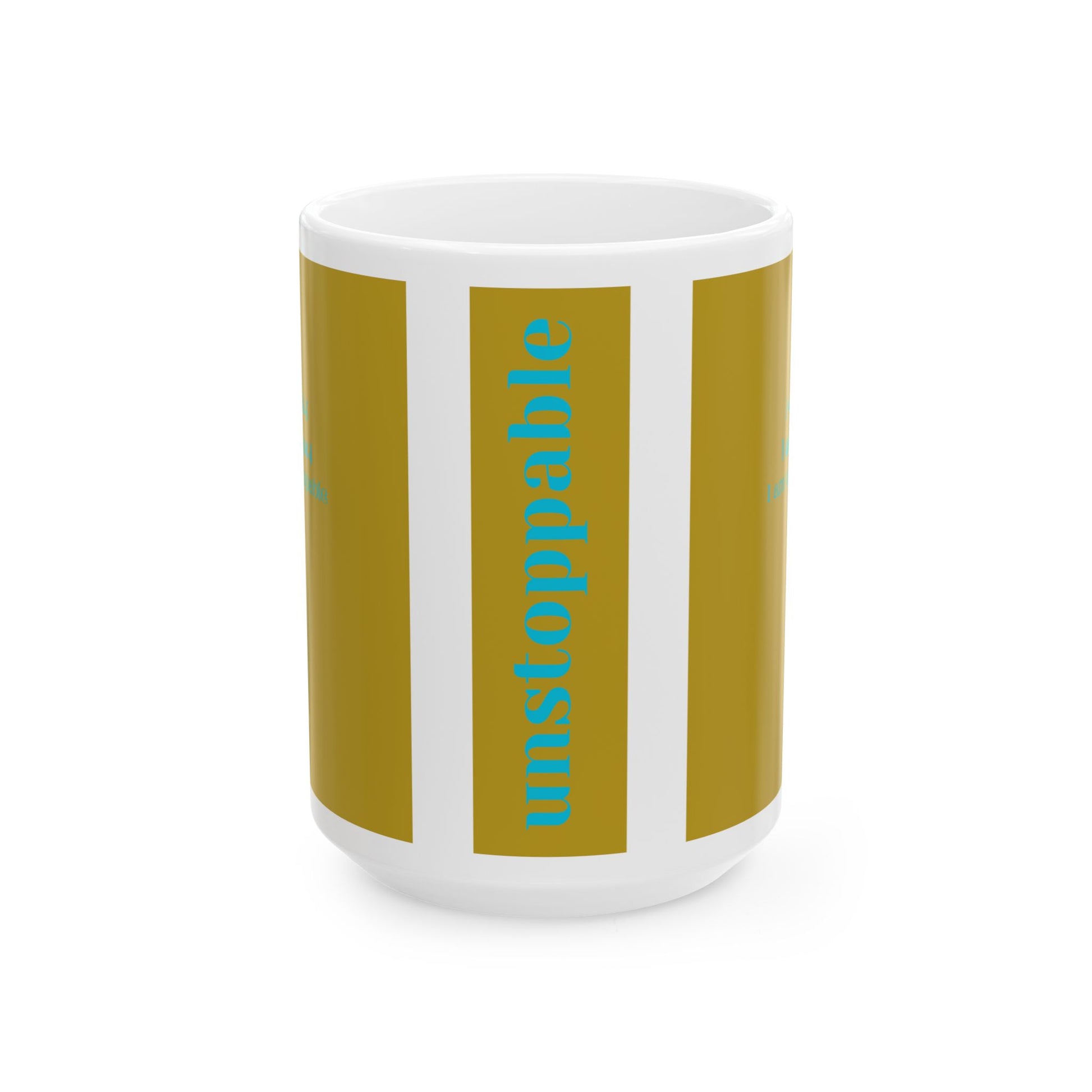 Start your day with the Ceramic Mug featuring the word 'unstoppable'. Minimalistic design appeals to go-getters and visionaries. Perfect for enjoying your favorite drink while feeling empowered. Ideal for those looking for a daily dose of motivation and positivity. Great for gifting on birthdays, graduations, or as a pick-me-up present.